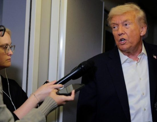 President Donald Trump, when asked about the prospect of a two-state solution for Israel and the Palestinians, declined to commit, telling reporters, ‘We’ll